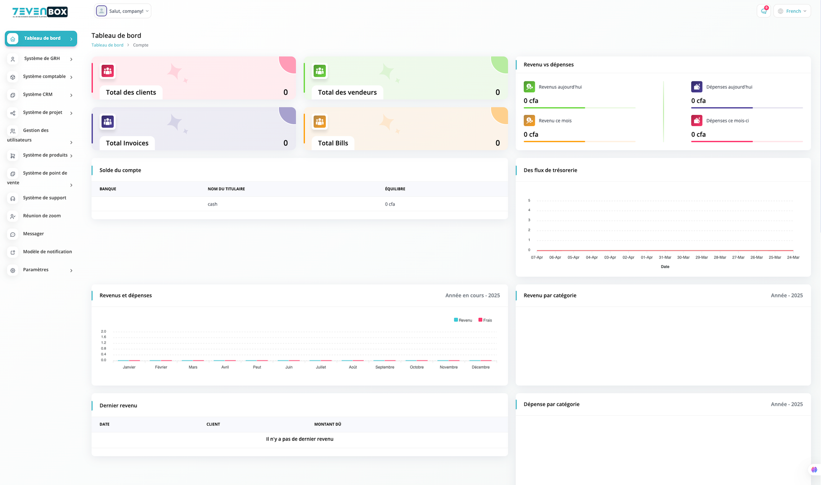Découvrez 7evenbox, la plateforme ERP tout-en-un conçue pour simplifier la gestion de votre entreprise. RH, CRM, finances, projets, comptabilité, boutique, réunions en ligne, gestion de stock… tout ce dont vous avez besoin, en un seul endroit.